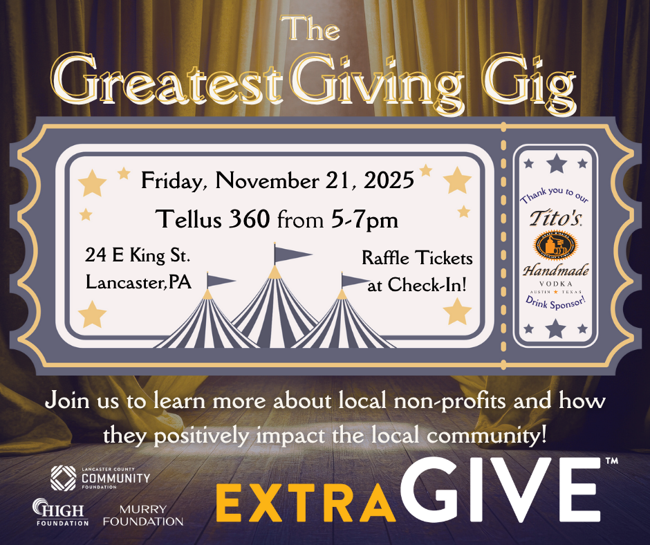Make your impact by donating at the link below on November 21st, and come celebrate with us at the Greatest Giving Gig at Tellus360 from 5–8 PM. Together, we can elevate mental health for Lancaster’s youth!